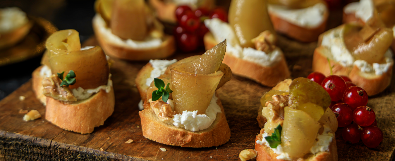 Caramelised pear & goat’s cheese crostinis by EUROSPAR